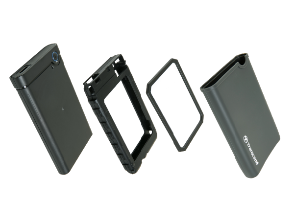 創見SSD/HDD升級套件組不單只提供裸殼,更包含了外層橡膠套與內層橡膠防震套,提供絕佳的抗震保護。此外,為了讓7mm的硬碟可以完全裝入內層橡膠防震套內,此升級套件組內附墊高片,可黏貼於硬碟的其中一面,替硬碟增厚2.5mm。