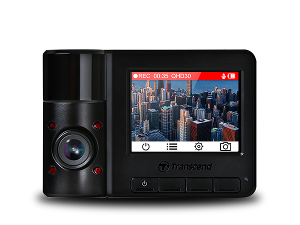 創見DrivePro 550行車記錄器採用一機雙鏡頭設計,打造內外兼顧的行車安全防護。前鏡頭搭配高感光元件及超大視野,以每秒30張的解析度,清楚實錄2K QHD 1440P高畫質影片;車內鏡頭則是180度可旋轉式設計,搭配四個紅外線LED燈,在夜間或是低光源下依舊可以清楚錄下車內影像。