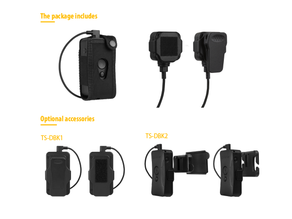 創見DrivePro Body 70內附必備的穿戴配件,可彈性安排機身與鏡頭的配戴位置。此外,創見也推出一系列選購配件,包含360度旋轉式背夾、魔鬼氈背夾、磁扣背夾組、及MOLLE支架。