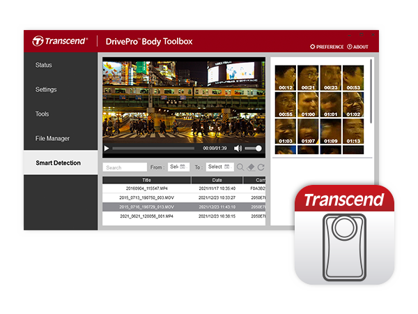 DrivePro Body Toolbox 軟體透過人性化的操作介面,提供使用者在電腦上安全地管理影片與快照檔案,更可以進行軟體與DrivePro Body裝置的設定、格式化與更新韌體等。 DrivePro Body Toolbox提供智慧辨識功能,可自動偵測影像中的常見物件,以人臉為例,Toolbox會自動偵測並擷取有人臉的影像片段,提供使用者進行模糊化處理。