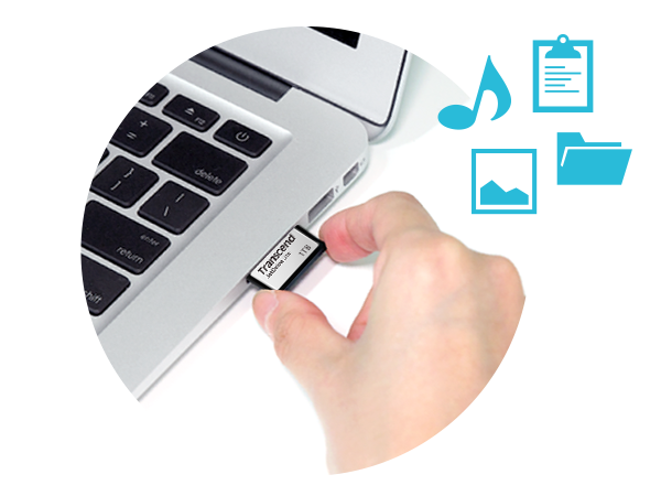 JetDrive Lite擴充卡具備隨插即用功能,只需插入MacBook的卡片擴充槽,就可立即為筆電提供高達1TB的儲存空間,讓您隨心所欲存放高解析度相片、音樂及Full HD高畫質影片。
