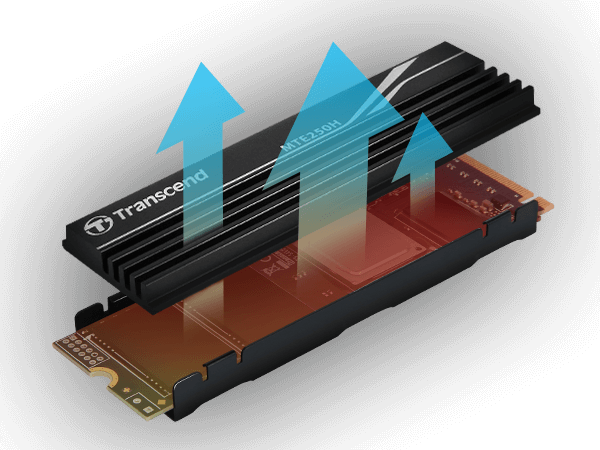 高速運轉的PCIe SSD MTE250H搭載鋁鰭式散熱片,鋁合金具備輕薄、高導熱特性,可加強裝置熱對流,有效降溫15%,當桌機和遊戲主機長時間高速運行仍可保持最佳性能。