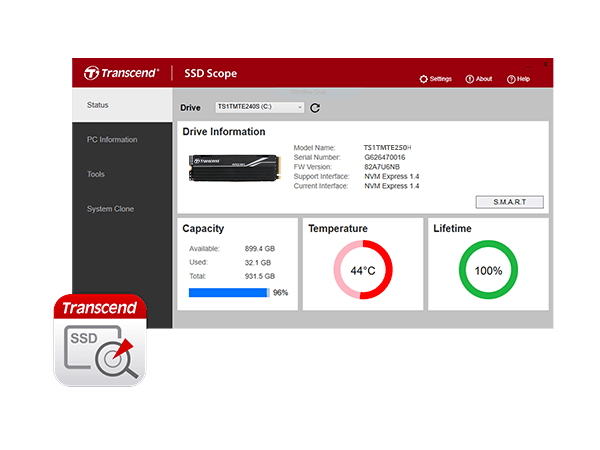 創見SSD Scope軟體專為創見固態硬碟設計,以人性化的操作介面匯集最新技術,能監控創見固態硬碟的健康狀況並優化其效能。透過整合重要的功能,SSD Scope軟體讓你的固態硬碟常保最佳狀態!