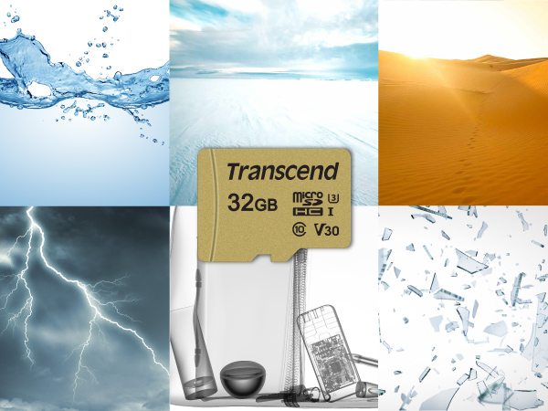創見microSD記憶卡均通過嚴格的環境測試,以提供絕佳的傳輸效能與穩定性,不僅耐極端溫度,更防水、防震、防X光與防靜電。